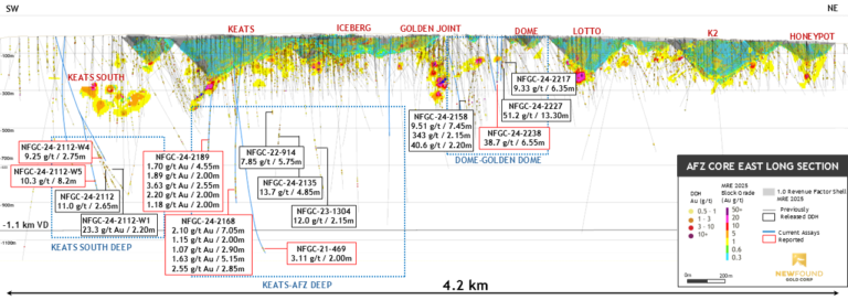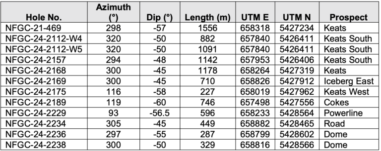 - 6.16 g/t Au over 3.10 m, including 18.4 g/t Au over 0.50 m from the Keats-Appleton Fault Zone Deep Zone (“Keats-AFZ Deep”, NFGC-24-2168)
